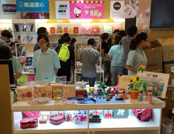 “童洋折纸”的合作文具公司参展,现场设有“童洋折纸”产品陈列区、作品展示区、手工体验区等,场面火爆,热闹非凡。