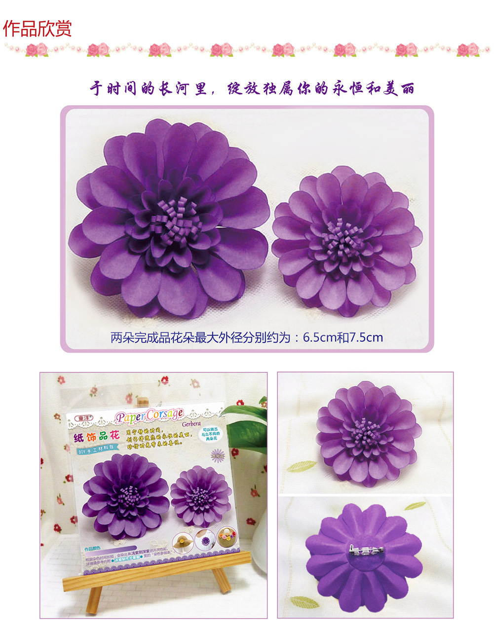 【型 号】:PCG1014【包装尺寸】:15.0×15.0cm 【产品内含】:花瓣及花芯?两套(可做两朵紫色系胸花)